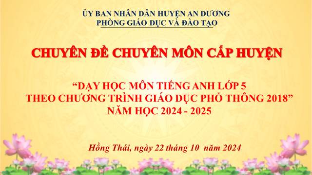 Chuyên đề Tiếng Anh lớp 5 của Trường Tiểu học Hồng Thái được các đồng chí giáo viên trong huyện đánh giá cao về chất lượng và tính thực tiễn. Với tinh thần không ngừng học hỏi, sáng tạo và tâm huyết, đội ngũ giáo viên môn Tiếng Anh đang góp phần tích cực cùng nhà trường hoàn thành tốt nhiệm vụ năm học.
