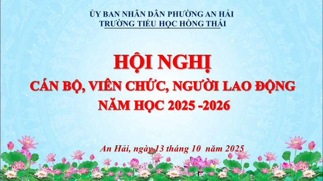 Hội nghị cán bộ, viên chức và người lao động Trường Tiểu học Hồng Thái là hội nghị phát huy quyền làm chủ của Cán bộ, viên chức và nêu cao vai trò, trách nhiệm của người đứng đầu; tập hợp sức mạnh tập thể và năng lực sáng tạo của mỗi Cán bộ, viên chức, người lao động, các tổ chức đoàn thể trong nhà trường nhằm thực hiện tốt nhất nhiệm vụ năm học 2025 – 2026; thông qua Hội nghị phát động trong cán bộ, viên chức, người lao động tiếp tục đẩy mạnh các phong trào thi đua, các cuộc vận động do Đảng, nhà nước, ngành và địa phương phát động; trên cơ sở đánh giá kết quả các phong trào thi đua đã thực hiện, rút ra bài học, kinh nghiệm, có giải pháp để thực hiện hiệu quả các phong trào thi đua, các cuộc vận động góp phần nâng cao chất lượng giáo dục.