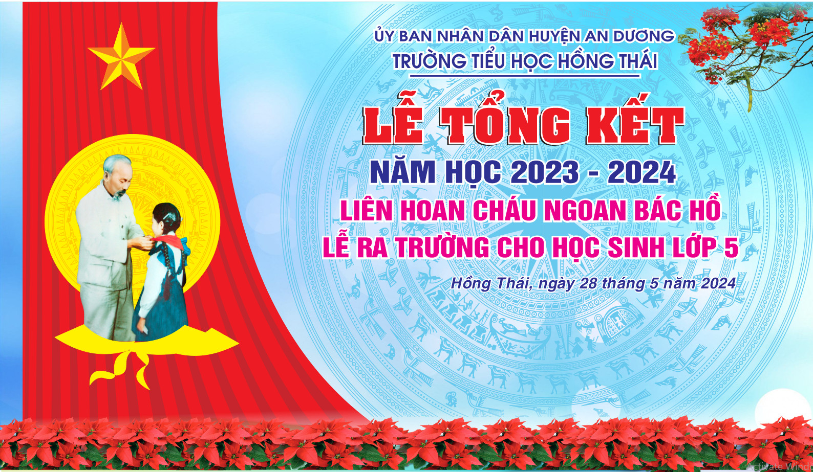Sáng ngày 28 tháng 5 năm 2024 trường Tiểu học Hồng Thái đã long trọng tổ chức buổi Lễ tổng kết năm học 2023-2024, Liên hoan cháu ngoan Bác Hồ và Lễ ra trường cho các em học sinh lớp 5 khóa 2019-2024.
