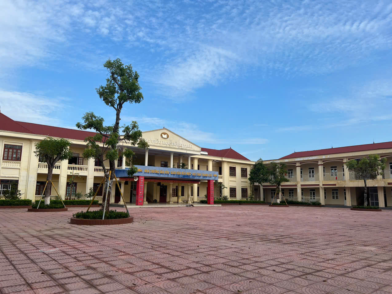 Sau cơn bão số 3 (Yagi) trường Tiểu học Hồng Thái bị thiệt hại nặng nề: Dãy nhà A (8 phòng học), dãy nhà C (phòng Tin học + 01 phòng học) bị tốc mái; nhà xe học sinh và thư viện ngoài trời bị sập; nhà đa năng bị thủng mái tôn và tường phía Tây; tường bao phía sau khu hiệu bộ bị đổ; các phòng học hệ thống cửa sổ bị hỏng, hệ thống điện và wifi bị mất....··