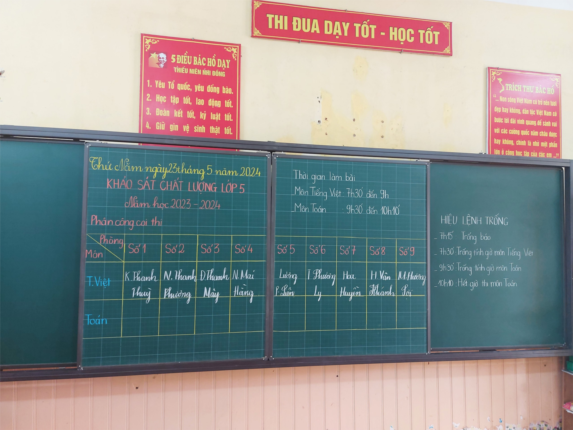 Ngày 23/05/2024 trường Tiểu học Hồng Thái tổ chức kỳ thi khảo sát chất lượng cho học sinh lớp 5 theo lịch của Phòng GD&ĐT An Dương. Nhà trường đã tổ chức khảo sát nghiêm túc, khách quan, đánh giá chính xác kết quả dạy và học của thầy và trò. Sau đây là một số hình ảnh của buổi khảo sát.
