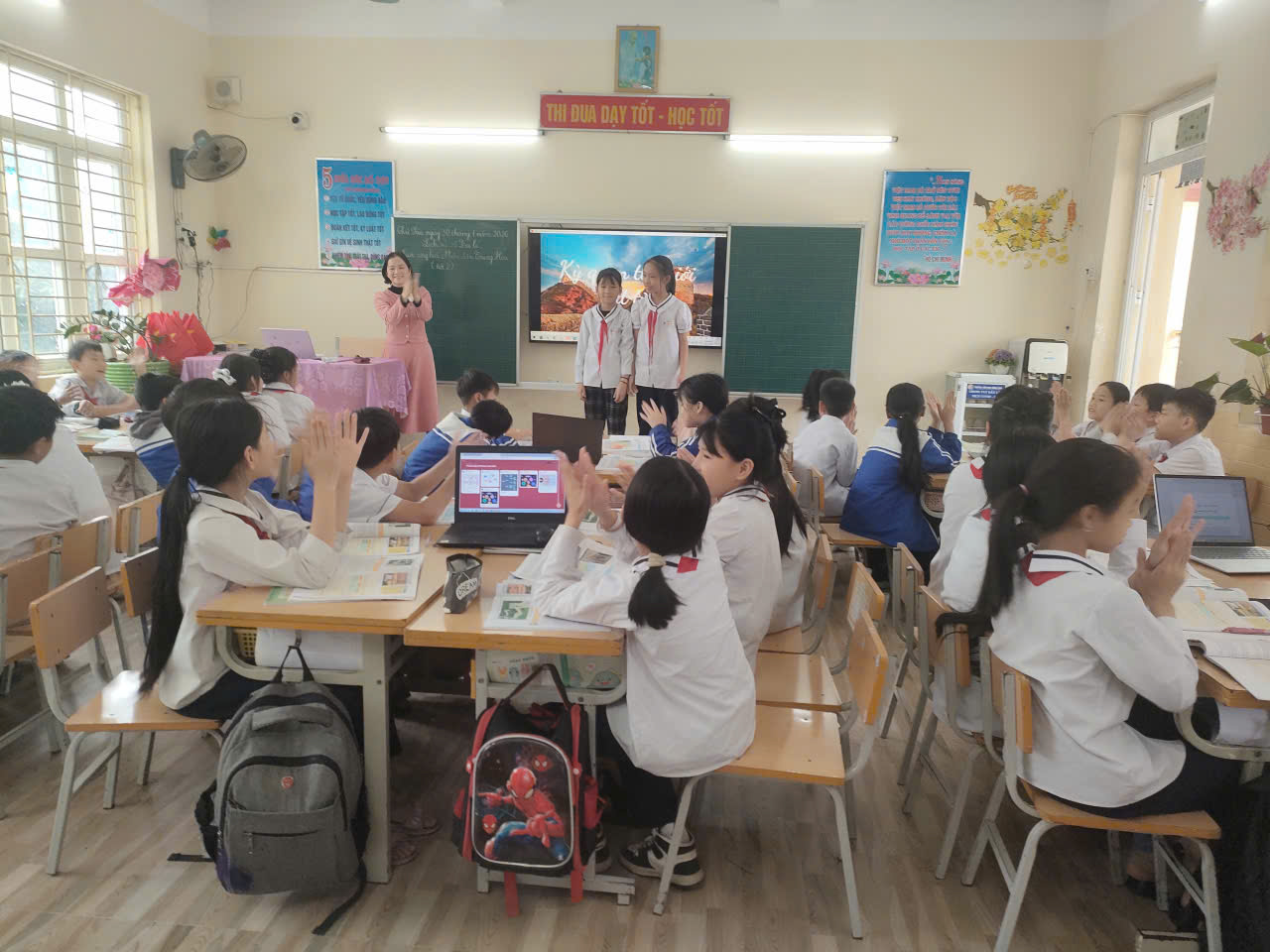 Trong tiết học, giáo viên đã vận dụng linh hoạt các phương pháp dạy học tích cực, lấy học sinh làm trung tâm. Các hoạt động học tập được tổ chức đa dạng như thảo luận nhóm, khám phá kiến thức, chia sẻ kết quả học tập, giúp học sinh chủ động tiếp cận nội dung bài học, phát triển tư duy và năng lực tự học.